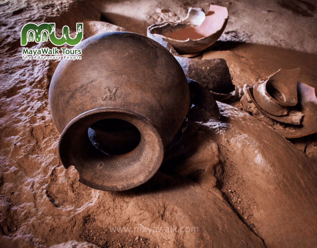 As we made our way deeper into the cave, we began encountering our first signs of the Maya’s presence. What started as subtle details: small fragments of pottery tucked into shadowed corners, faint soot marks on the ceiling from ancient torches, quickly grew more striking. Our guide pointed out where ceremonial vessels had been intentionally placed, many still resting exactly where they were left over a thousand years ago. It was a quiet but powerful shift. From exploring a natural wonder to stepping into a sacred space shaped by human hands and belief. With each step forward, the cave felt less like a hidden landscape and more like a preserved moment in time, where the lives, rituals, and intentions of the Maya still lingered in the darkness. Then came the first of many sets of ancient remains of Mayan sacrifices.